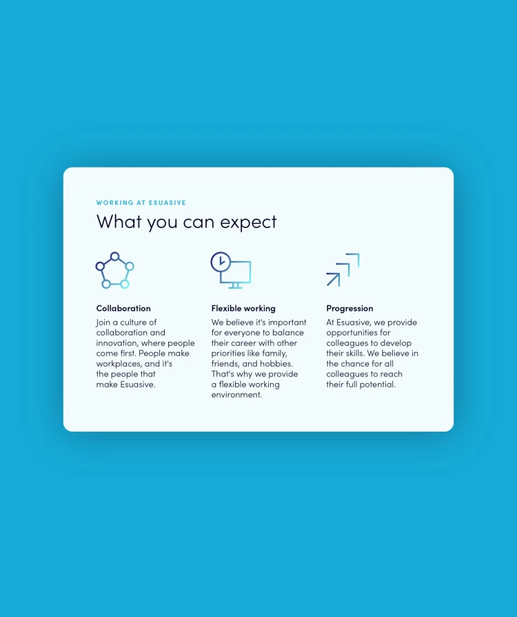 Our initial objective was to develop a distinct brand identity that captured what truly sets Esuasive apart, whilst highlighting its core strengths and values as a business.